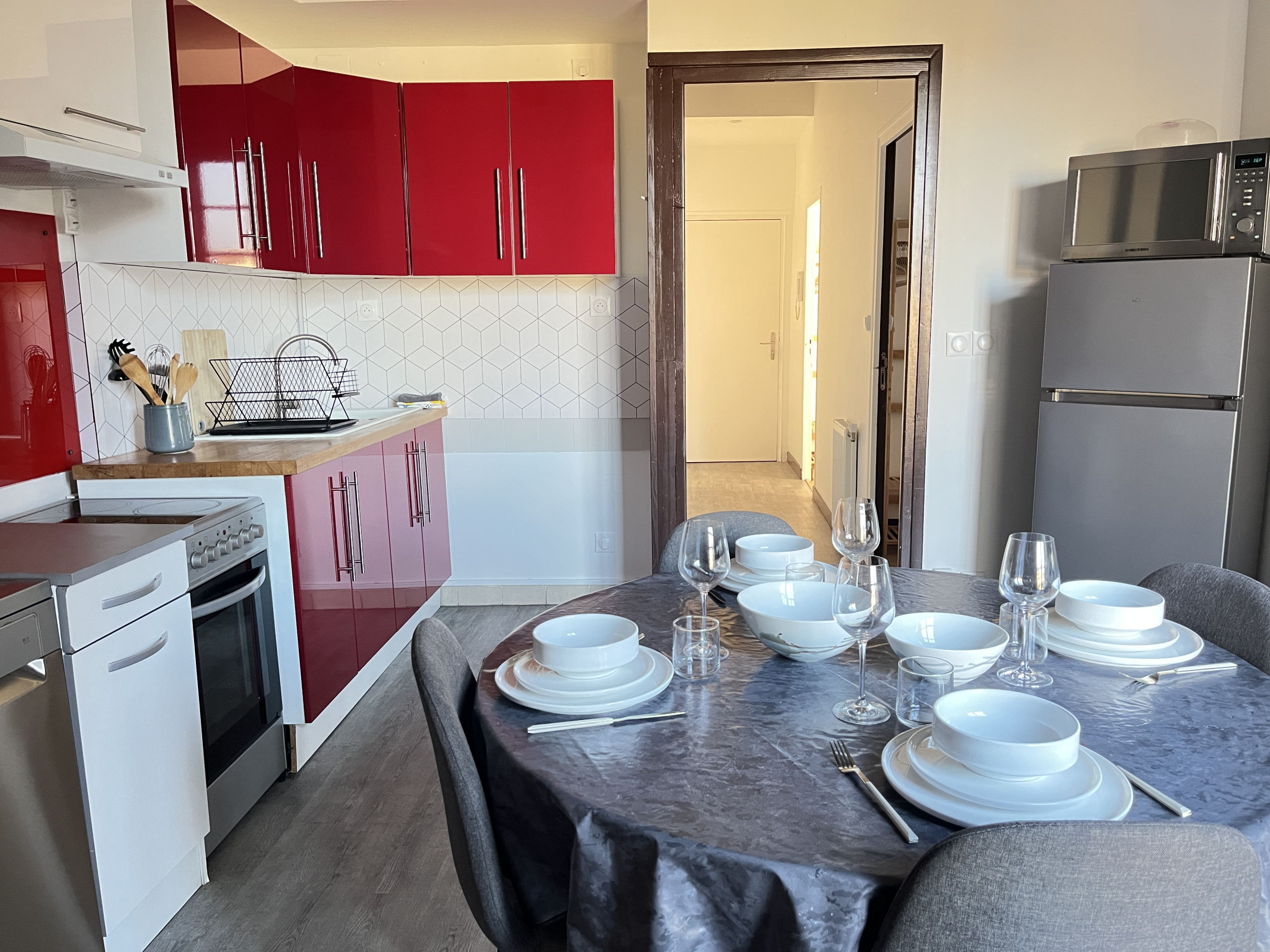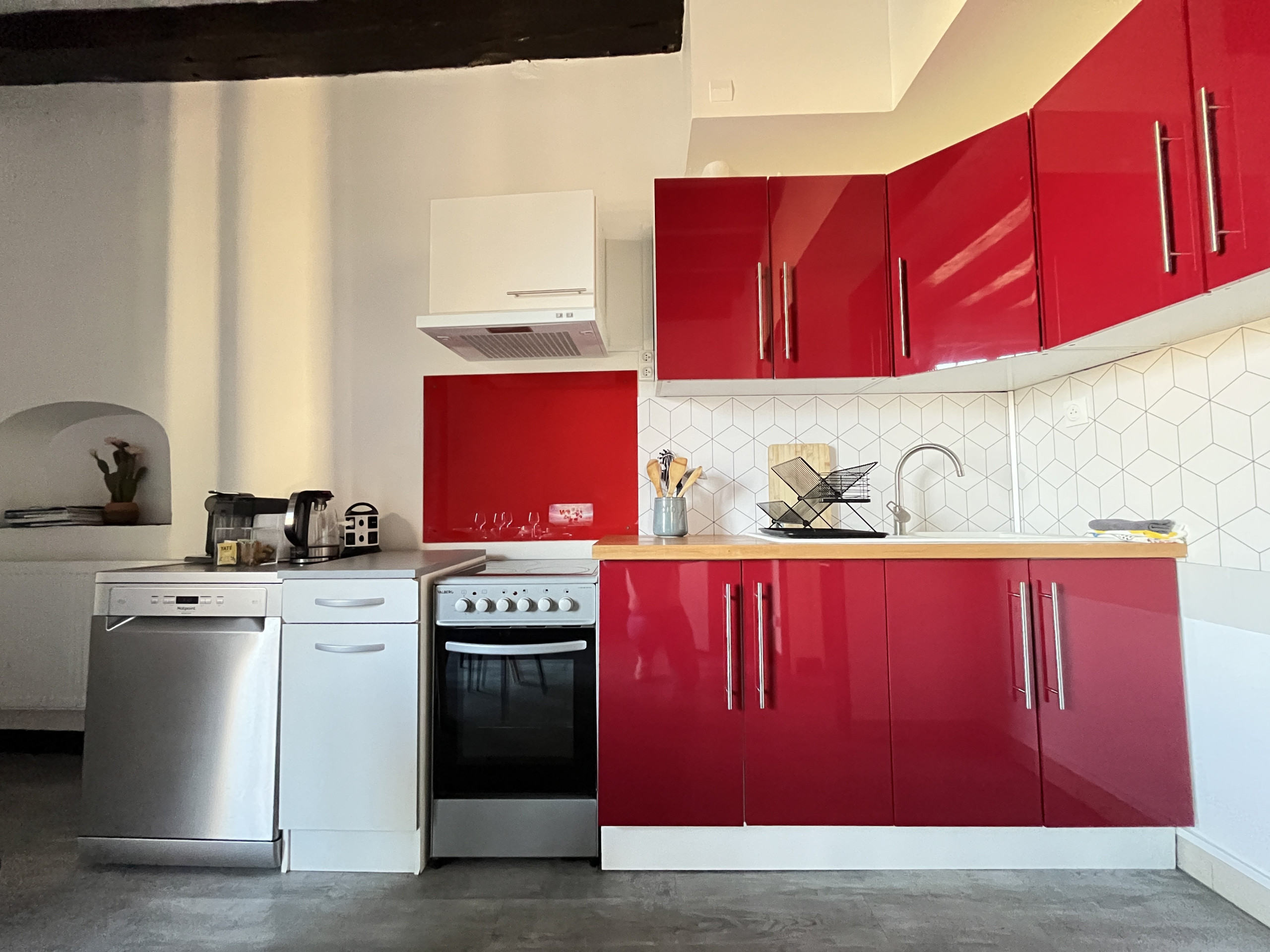 The open kitchen, modern and fully equipped, has a dishwasher, an oven, hobs and a Nespresso coffee machine, for optimal comfort.