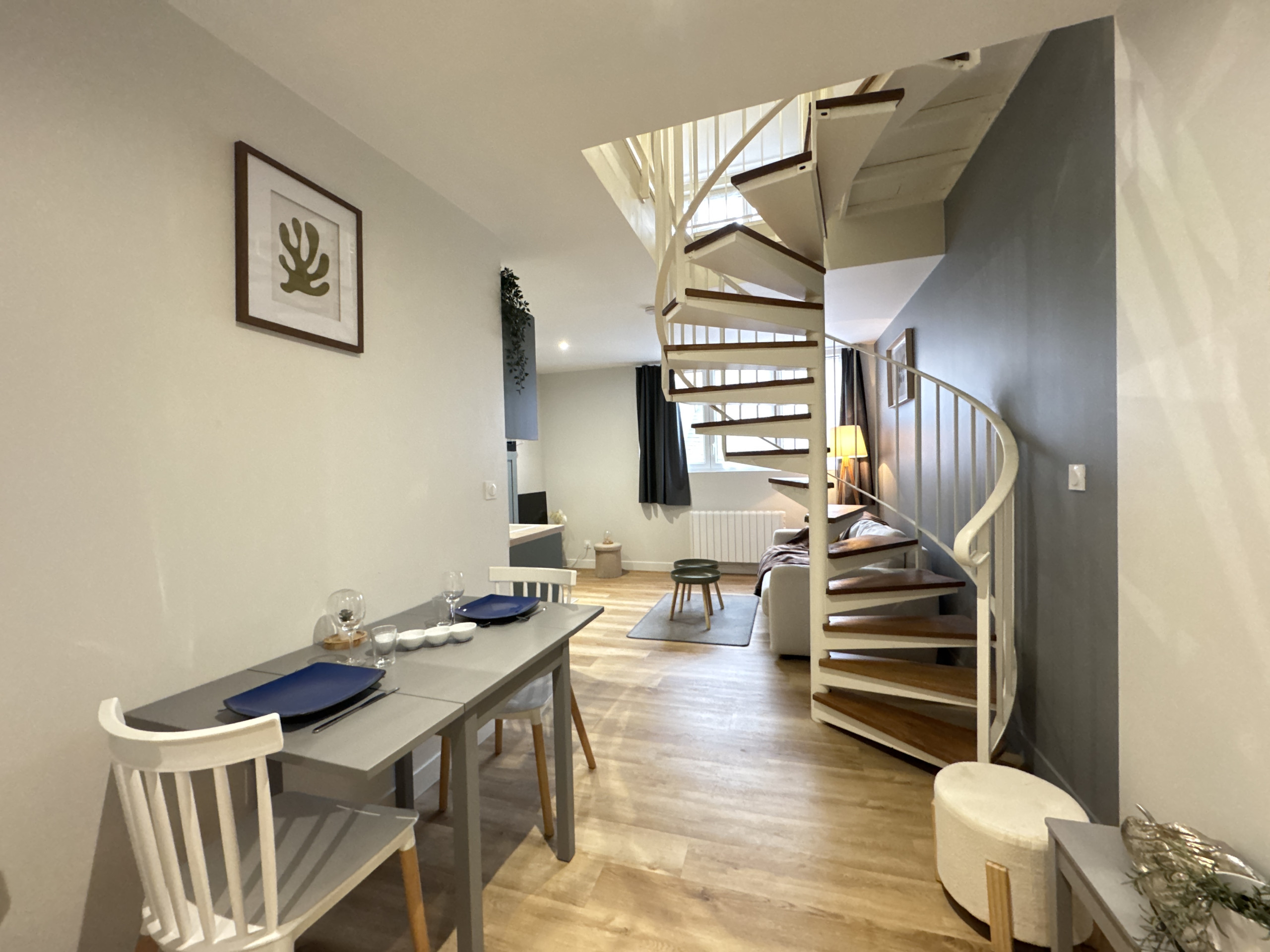 Situado en la primera planta de un pequeño edificio de solo 2 apartamentos, este dúplex está perfectamente adaptado para hasta 4 viajeros.