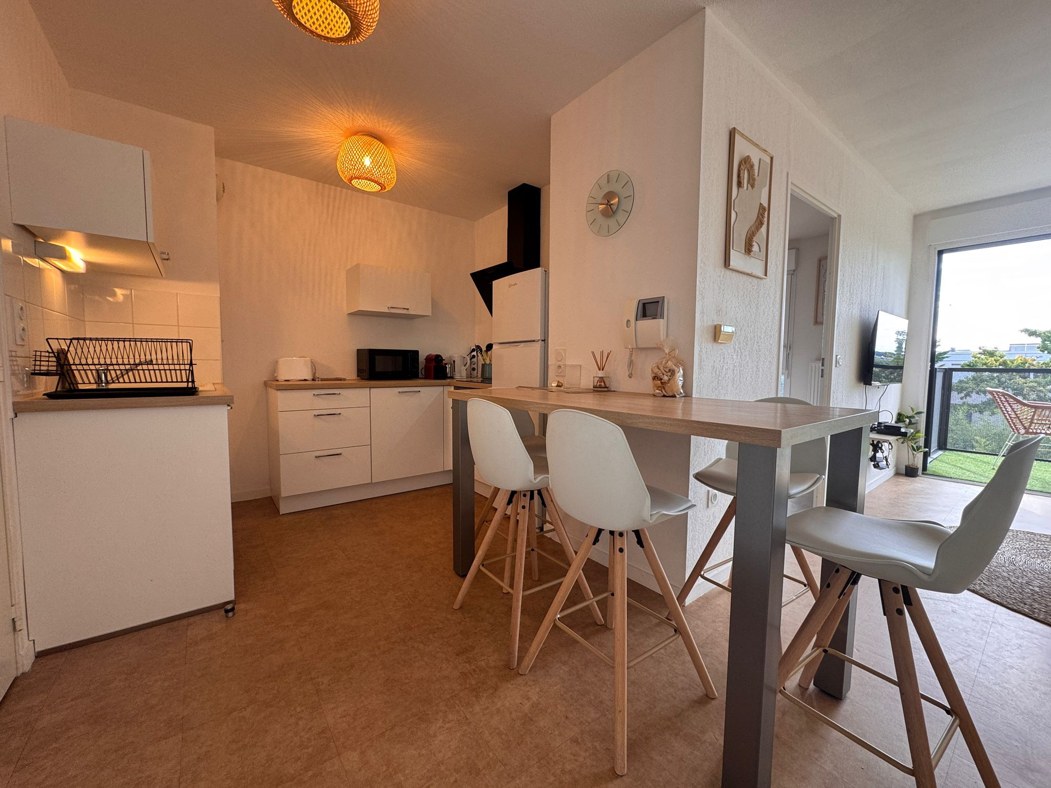 - Cocina abierta, amueblada y totalmente equipada