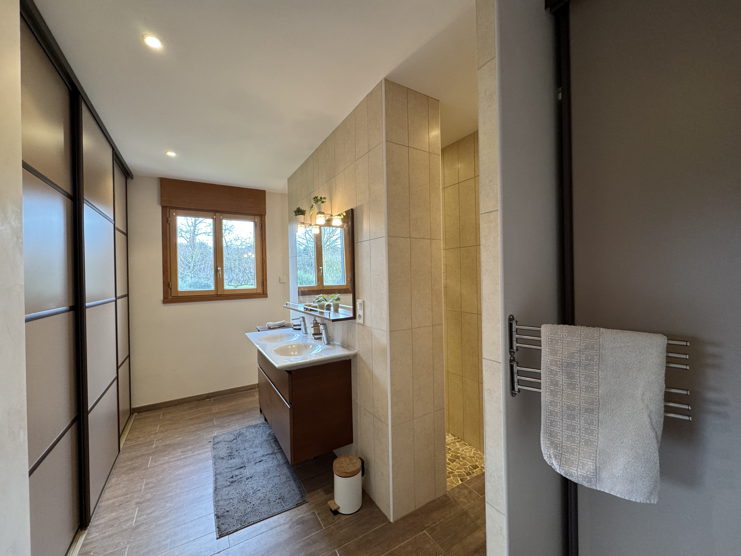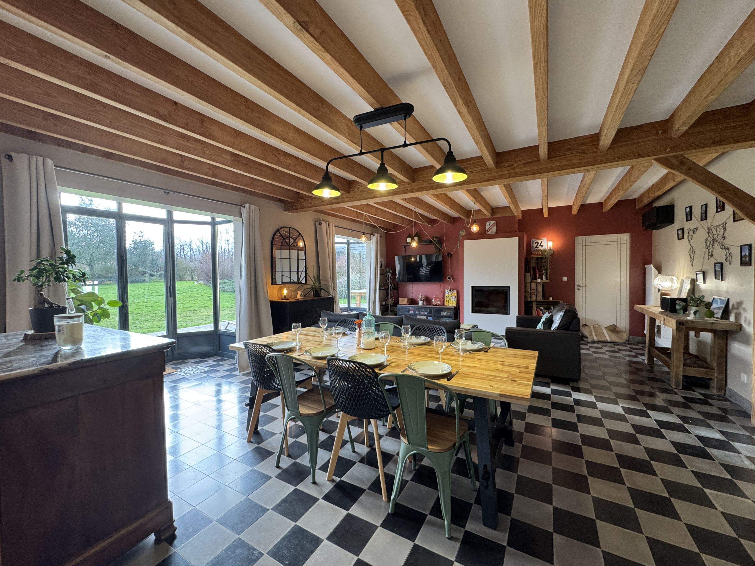 Logement de 190 m² accueillant et moderne, avec vue sur le jardin et la piscine.