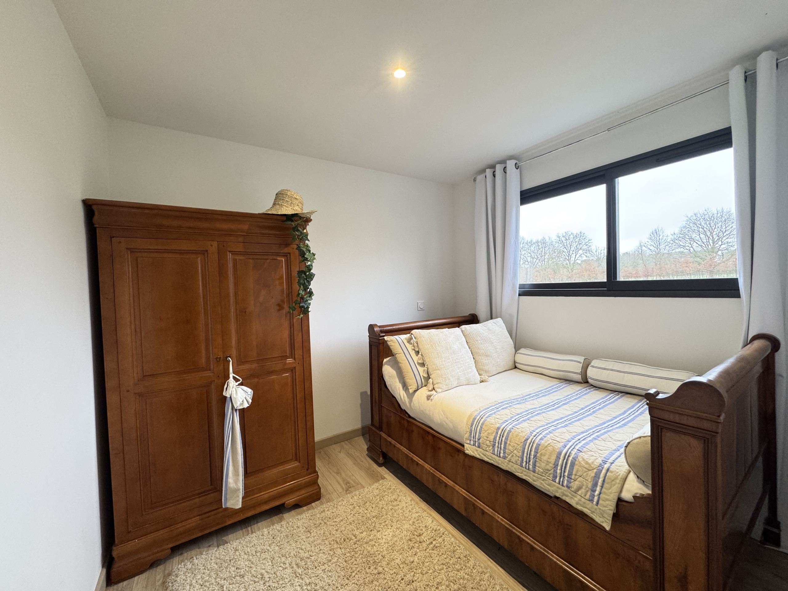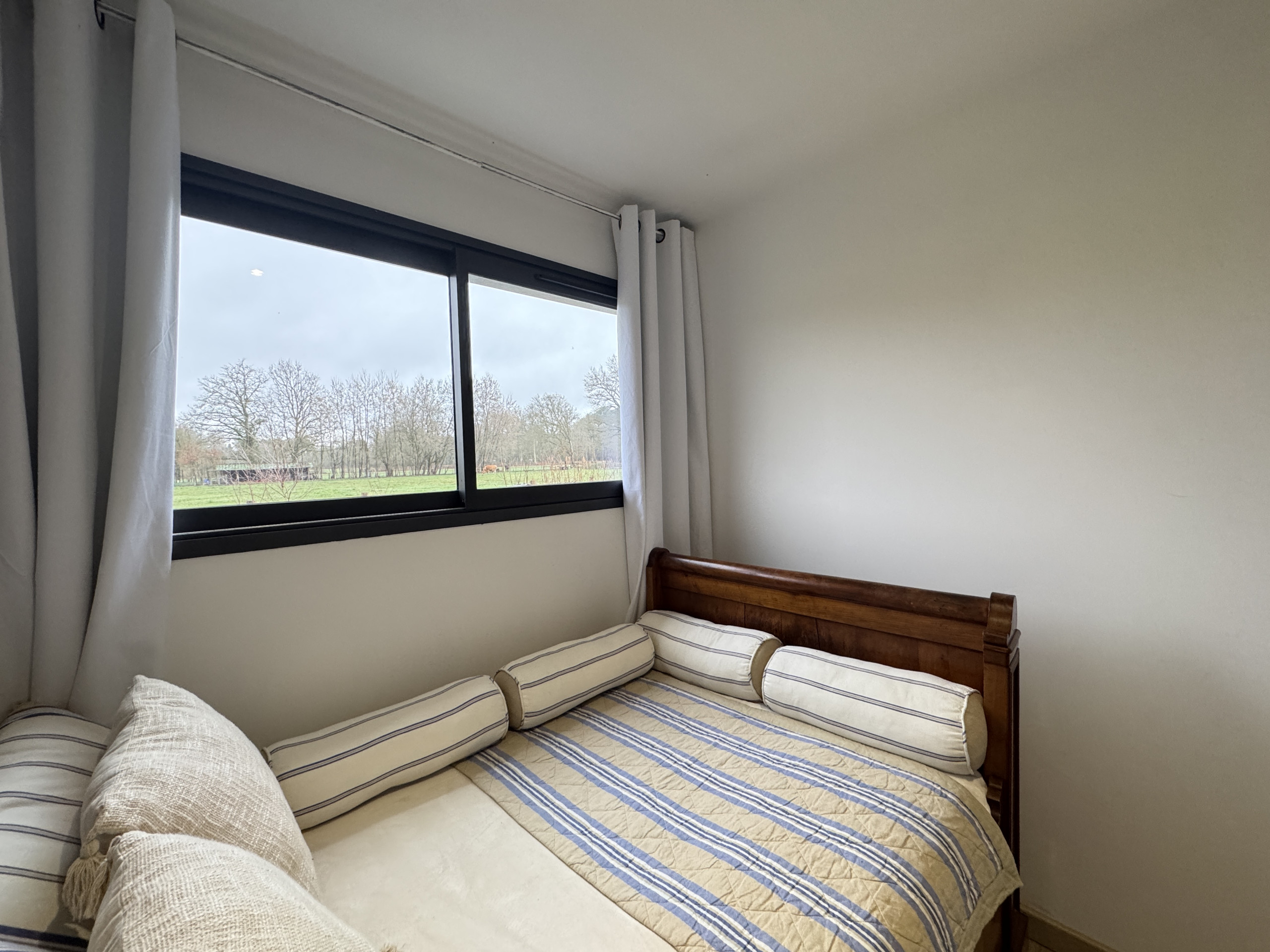 - Une seconde chambre avec lit 120x190, idéale pour un adulte ou deux enfants, avec une jolie vue sur un grand champ où vous pourrez apercevoir des vaches